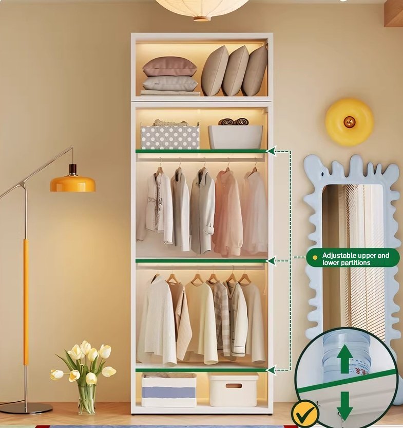 - Modular Flexibility: The interior features adjustable partitions and hanging rods, allowing users to customize the space for long coats, folded linens, or bulky suitcases.